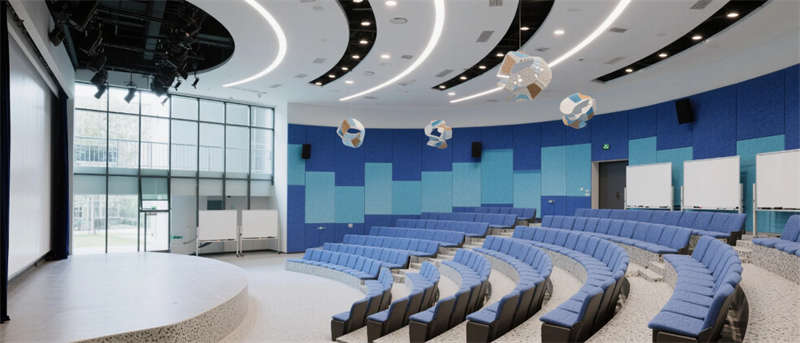 獨(dú)立辦公空間以溫潤(rùn)木質(zhì)包裹私密場(chǎng)域,隱藏式收納與可變形沙發(fā)實(shí)現(xiàn)功能復(fù)合;封閉會(huì)議室通過(guò)智能調(diào)光玻璃平衡科技效率與人文溫度,聲學(xué)織物墻面如城市肌理般起伏。社交樞紐咖啡吧保留混凝土原始粗糲感,苔蘚綠植墻與古董吊燈碰撞出工業(yè)浪漫,成為思想交鋒的容器。階梯式報(bào)告廳以水磨石曲面呼應(yīng)合肥山水脈絡(luò),可開(kāi)合隔斷延展空間維度。