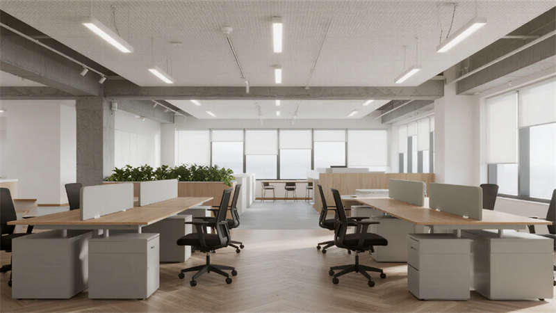內(nèi)部空間延續(xù)外部的純凈氣質(zhì)。企業(yè)大堂以淺白色大理石地面與溫潤(rùn)木紋墻面奠定基調(diào),弧形純白前臺(tái)點(diǎn)綴深藍(lán)企業(yè)標(biāo)識(shí),懸浮線性燈光延伸視覺(jué)。右側(cè)等候區(qū)模塊化沙發(fā)與綠植盆景營(yíng)造舒適氛圍,左側(cè)數(shù)字影像墻動(dòng)態(tài)展示企業(yè)風(fēng)采,淺灰肌理漆背景墻在隱藏?zé)魩в骋r下更顯質(zhì)感。開(kāi)放式辦公區(qū)強(qiáng)調(diào)高效與靈活,白色穿孔吸音天花下,淺灰可升降桌與黑色人體工學(xué)椅組合排列,協(xié)作島與窗邊高吧臺(tái)滿足多元需求,淺木紋PVC地面增添自然暖意。高管辦公室運(yùn)用灰玻隔斷與電動(dòng)霧化膜保障私密,胡桃木辦公桌、深灰皮質(zhì)沙發(fā)與嵌入式書(shū)柜彰顯沉穩(wěn),無(wú)主燈設(shè)計(jì)營(yíng)造專(zhuān)注氛圍。公共支持區(qū)模塊化吧臺(tái)、淺木紋儲(chǔ)物柜與智能文件柜集成高效服務(wù),細(xì)節(jié)處的綠植點(diǎn)綴延續(xù)生態(tài)關(guān)懷。整體設(shè)計(jì)從外至內(nèi),以統(tǒng)一的色調(diào)、考究的材質(zhì)與智能化細(xì)節(jié),塑造出體現(xiàn)合肥創(chuàng)新精神的智慧辦公新標(biāo)桿。