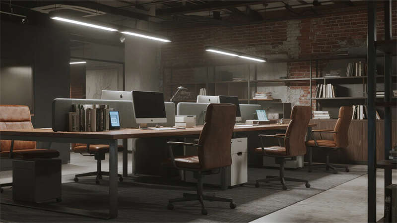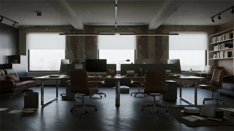 這組工業(yè)風辦公室設(shè)計以裸露結(jié)構(gòu)和復古質(zhì)感為核心,通過混凝土、金屬和木質(zhì)材料的碰撞,打造出兼具實用性與藝術(shù)感的辦公空間??臻g保留了建筑的原始肌理,如天花板的管線和墻面的磚紋,搭配黑色鐵藝家具和深色調(diào)軟裝,營造出冷峻而富有張力的氛圍。局部通過皮質(zhì)沙發(fā)、綠植和暖光燈具軟化工業(yè)風的硬朗感,增添人文氣息。