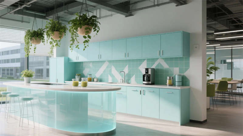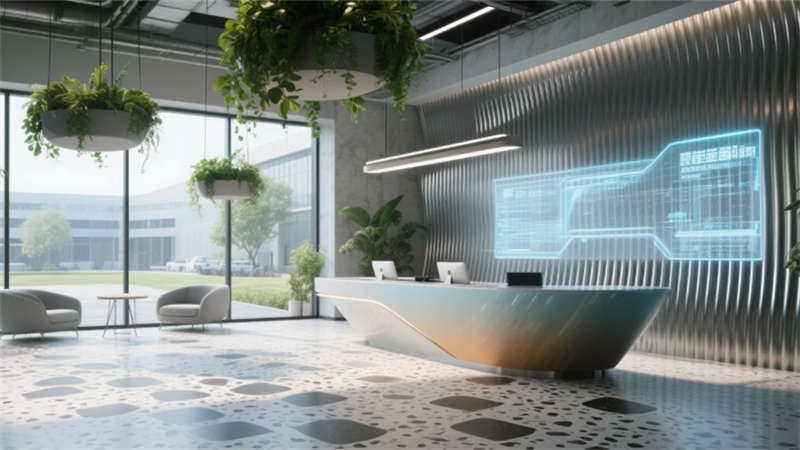 智能協(xié)作區(qū)配備環(huán)形數(shù)字屏幕與可書(shū)寫(xiě)隔斷,激發(fā)團(tuán)隊(duì)創(chuàng)造力;靜音艙體與獨(dú)立辦公室滿足深度工作需求。員工休憩區(qū)通過(guò)柔和的馬卡龍色調(diào)與曲線家具,營(yíng)造松弛氛圍。接待廳的波紋金屬墻與全息投影臺(tái),在溫潤(rùn)木元素中點(diǎn)綴未來(lái)感。