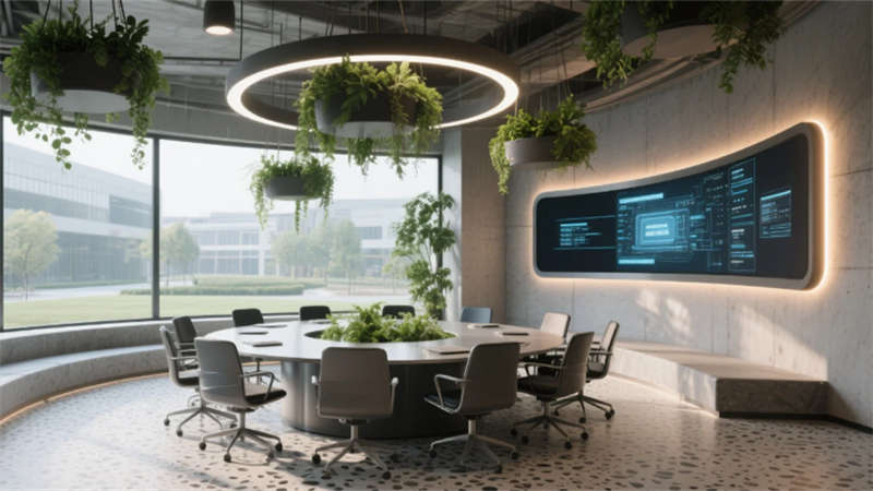 空間摒棄傳統(tǒng)隔斷,運(yùn)用通透玻璃與可移動(dòng)裝置實(shí)現(xiàn)功能轉(zhuǎn)換,陽(yáng)光透過(guò)智能窗控系統(tǒng)灑入每個(gè)角落。材質(zhì)與光影的精心編排,構(gòu)建出兼具高效協(xié)作與人文關(guān)懷的現(xiàn)代辦公生態(tài),詮釋創(chuàng)新企業(yè)的精神內(nèi)核。