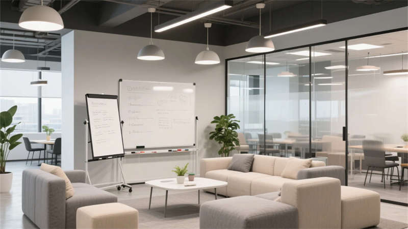 這個辦公室設(shè)計以現(xiàn)代簡約風(fēng)格為核心,通過流暢線條和中性色調(diào),打造出一個和諧而高效的工作環(huán)境。整體布局強調(diào)開放性與功能性,功能區(qū)之間無縫銜接,利用玻璃隔斷和自然光,營造通透感。接待區(qū)以溫馨氛圍迎接訪客,開放辦公區(qū)促進團隊協(xié)作,會議室提供寧靜討論空間。休息區(qū)與茶水間則融入綠植元素,為員工提供放松角落,提升日常舒適度。經(jīng)理辦公室和專注區(qū)平衡了私密需求,協(xié)作空間鼓勵創(chuàng)意交流。設(shè)計注重人性化細節(jié),如柔和燈光和懸浮家具,減少視覺雜亂,同時強化生態(tài)理念。整個空間不僅美觀實用,還體現(xiàn)了對員工福祉的關(guān)懷,營造出積極的工作氛圍。蚌埠元素貫穿始終,展現(xiàn)地方特色與現(xiàn)代美學(xué)的融合,讓辦公環(huán)境成為靈感源泉。