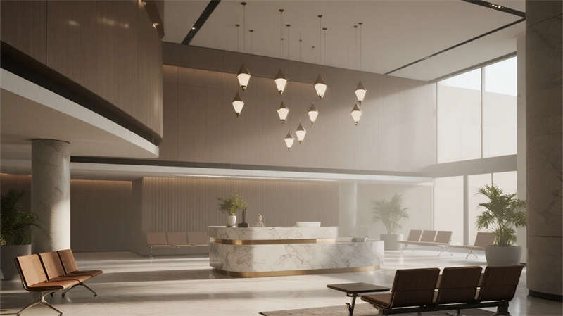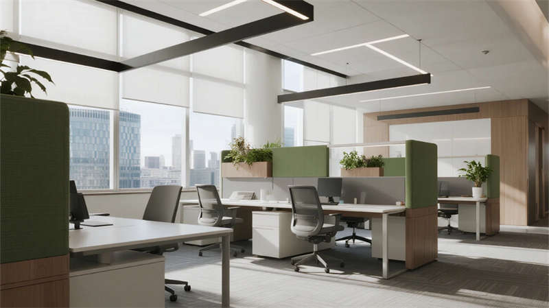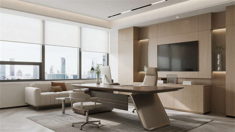 本設(shè)計(jì)以現(xiàn)代簡(jiǎn)約風(fēng)格為核心,強(qiáng)調(diào)功能與美學(xué)的和諧統(tǒng)一,為辦公環(huán)境注入靈動(dòng)活力。整體空間采用淺色調(diào)基座,搭配玻璃幕墻和金屬元素,營(yíng)造通透輕盈的視覺體驗(yàn)。辦公樓外觀以幾何線條勾勒城市天際線,大廳作為樞紐,以簡(jiǎn)約接待臺(tái)和綠植迎接訪客,傳遞專業(yè)與親和力。電梯間延續(xù)寧?kù)o氛圍,鏡面設(shè)計(jì)拓展空間感。開放辦公區(qū)注重協(xié)作,靈活布局促進(jìn)效率,自然光透過落地窗灑滿區(qū)域,綠植分隔既美觀又環(huán)保。經(jīng)理辦公室和總裁辦公室以私密性與開放性平衡,簡(jiǎn)約家具與城市景觀結(jié)合,提升工作舒適度。會(huì)議室功能性強(qiáng),玻璃墻增強(qiáng)通透感,便于創(chuàng)意碰撞。樓頂花園作為休憩綠洲,綠色屋頂與簡(jiǎn)約座椅提供放松空間,呼應(yīng)環(huán)保理念。設(shè)計(jì)融入蚌埠地域特色,汲取城市活力與自然元素,打造高效、舒適且可持續(xù)的辦公環(huán)境,體現(xiàn)現(xiàn)代工作方式的優(yōu)雅蛻變。