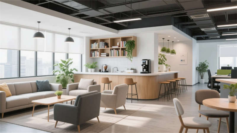 本辦公樓設(shè)計(jì)以簡(jiǎn)約現(xiàn)代風(fēng)格為核心,打造一個(gè)統(tǒng)一而流暢的空間體驗(yàn)。整體強(qiáng)調(diào)功能性、舒適性和美學(xué)平衡,每個(gè)功能區(qū)均采用中性色調(diào)、干凈線條和自然元素,營(yíng)造出寧?kù)o和諧的環(huán)境。大堂入口以開(kāi)放通透的布局迎接用戶,結(jié)合玻璃幕墻和木質(zhì)細(xì)節(jié),傳遞專業(yè)而溫馨的第一印象。開(kāi)放式辦公區(qū)通過(guò)模塊化家具和充足采光,促進(jìn)團(tuán)隊(duì)協(xié)作與效率。會(huì)議室設(shè)計(jì)注重靈活性,透明隔斷和集成設(shè)備支持高效交流。員工休息區(qū)和餐廳咖啡吧作為社交中心,提供舒適休閑空間,增強(qiáng)員工福祉。經(jīng)理辦公室平衡隱私與開(kāi)放性,簡(jiǎn)約家具營(yíng)造專注氛圍。走廊和衛(wèi)生間延續(xù)統(tǒng)一美學(xué),注重清潔與引導(dǎo)性,確??臻g銜接自然。