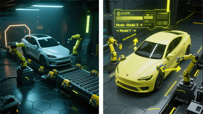 全場景貫穿透明化UI界面與發(fā)光網(wǎng)格線,既突顯工業(yè)級嚴(yán)謹(jǐn),又以動態(tài)數(shù)據(jù)流強(qiáng)化科技感知,為汽車制造賦予高效、低碳、安全的未來基因。