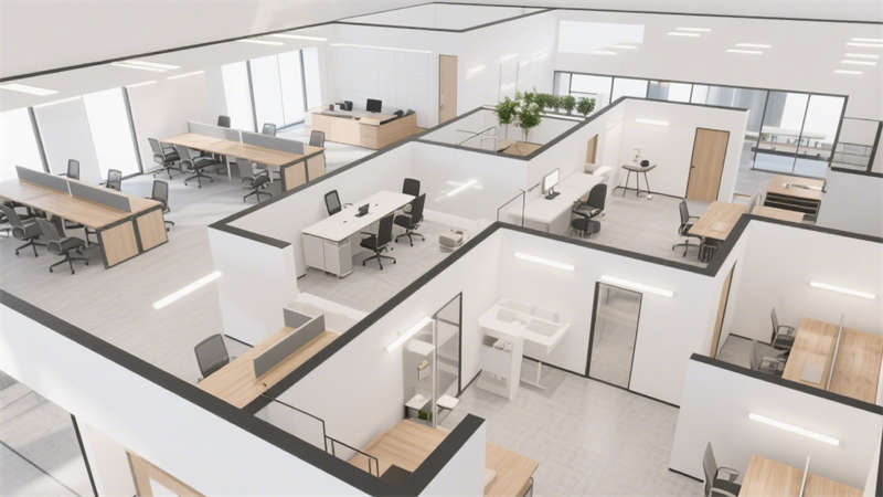 本設(shè)計秉持現(xiàn)代簡約風(fēng)格核心,將簡潔線條與實用功能深度融合,為辦公空間賦予清爽通透的視覺感受。整體空間摒棄冗余裝飾,以中性色調(diào)為基底,搭配低飽和度的輔助色彩,營造出沉穩(wěn)且不失活力的氛圍,讓身處其中的使用者能在舒適的環(huán)境中專注工作。?
